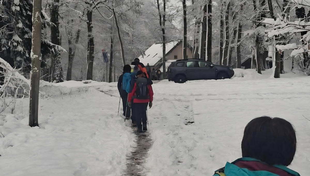 V koči so se pohodniko okrepčali z golažem, privoščili pa so si tudi čaj in kuhano vino. Potem pa so se odpravili nazaj v dolino.