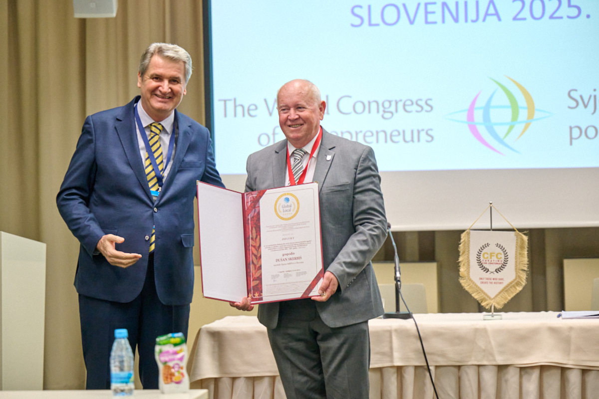 Župan Občine Mirna Dušan Skerbiš je bil minuli teden v sklopu 5. Svetovnega kongresa podjetnikov, ki ga je letos gostila Slovenija, imenovan za prvega predsednika mednarodne mreže prejemnikov nagrad in priznanj Globallocal, ki jih v sklopu kongresa podelijo lokalnim skupnostim in institucijam za ustvarjanje dobrih pogojev za razvoj podjetništva v Srednji in Jugovzhodni Evropi.