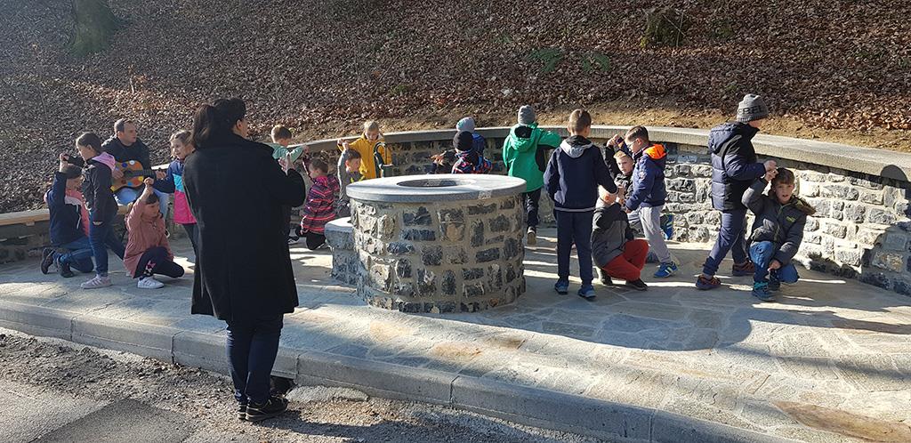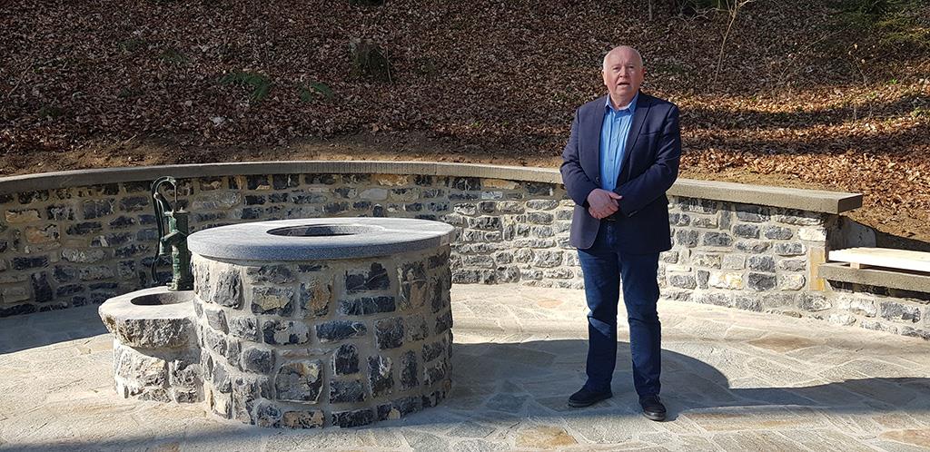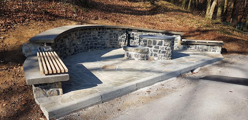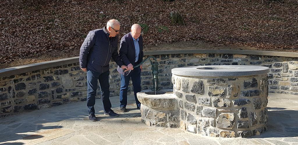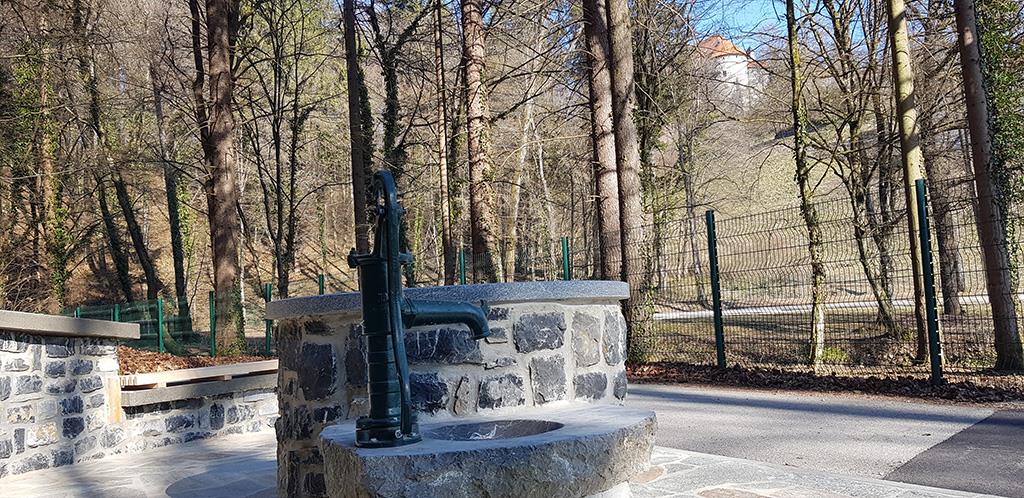 »Na nekem srečanju na trim stezi mi je naš občan Filip Povše, sicer lastnik podjetja Povše metal, predlagal, da bi uredili vodnjak ob trim stezi, t. im. grajski vodnjak. Občina je prisluhnila njegovemu predlogu in se lotila priprave vse ustrezne dokumentacije in urejanja prostora za vodnjak, ki ga je v celoti financiralo podjetje Povše metal z donacijo v proračun Občine Mirna. Danes je vodnjak urejen, voda trenutno še ni primerna za pitje. Naročili smo še eno analizo in ko bo prišla na občino, smo prepričani, da se bodo vsi tisti, ki se sprehajajo lahko osvežili z vodo iz grajskega vodnjak,« je povedal župan Dušan Skerbiš.