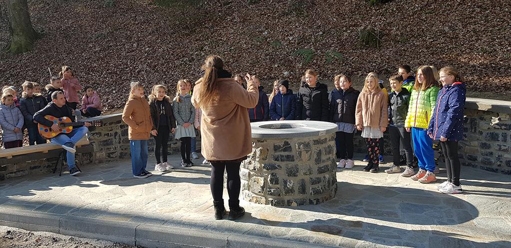 Med gradbenimi posegi so zaščitili celotno območje in grajski vodnjak pred zunanjimi vplivi in drugimi pritoki, s klopcami in platojem pa postaja prostor za druženje in morda tudi kakšno manjšo prireditev na prostem, kot je bila današnja. O vodi so peli učenci 2. a in 4. razreda mirnske osnovne šole, ki sta jih na nastop pripravili učiteljici Polonca Gole in Zala Hrastnik, s kitaro jih je spremljal Gašper Prosenik, župan občine Mirna Dušan Skerbiš in Filip Povše pa sta skupaj poprijela za ročno črpalko in prvič načrpala vodo. Članice društva Šola zdravja so v svojih prepoznavnih oblačilih prinesle sonce, pomlad pa je tako ali tako prišla že včeraj.