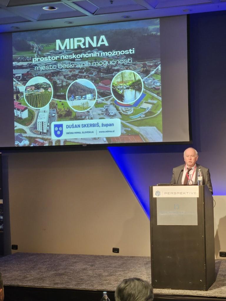 V sklopu večdnevne konference je župan Dušan Skerbiš predstavil vsestranski razvoj Občine Mirna od ustanovitve, torej od 1. julija 2011, s poudarkom na podjetništvu, med gospodarskimi dejavnostmi pa izpostavil turizem, saj je Mirna pobudnica in nosila občina edinstvenega projekta povezovanja Slovenije kot popotnikom z avtodomi prijazne destinacije. Ideja, da bi tudi po drugih državah jugovzhodne Evrope lahko sledili Sloveniji pri urejanju postajališč za avtodome, je naletela na zelo dober odziv, saj se razvojno usmerjene občine dobro zavedajo potenciala, ki ga prinaša ta segment turistov.