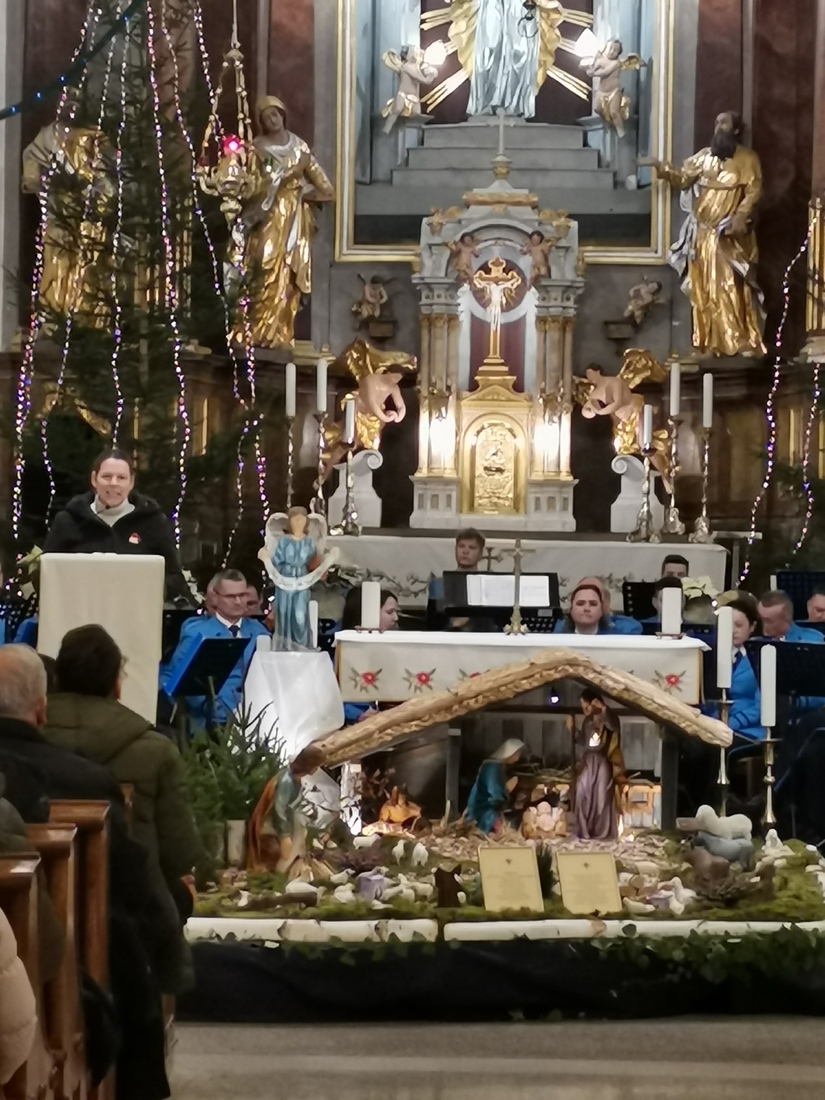 Radostnemu večeru je dodatno noto z izbrano besedo dodala Simona Koščak, ki je po zaključni besedi gostitelja koncerta, župnika Jožeta Pibernika, povabila vse nastopajoče pevke in pevce pred čudovite jaslice, kjer je Gruberjeva Sveta noč skupaj z orkestrom in številnimi obiskovalci veličastno napolnila vsak kotiček trebanjske cerkve in občuteno objela zbrane ob tem lepem tradicionalnem dogodku.