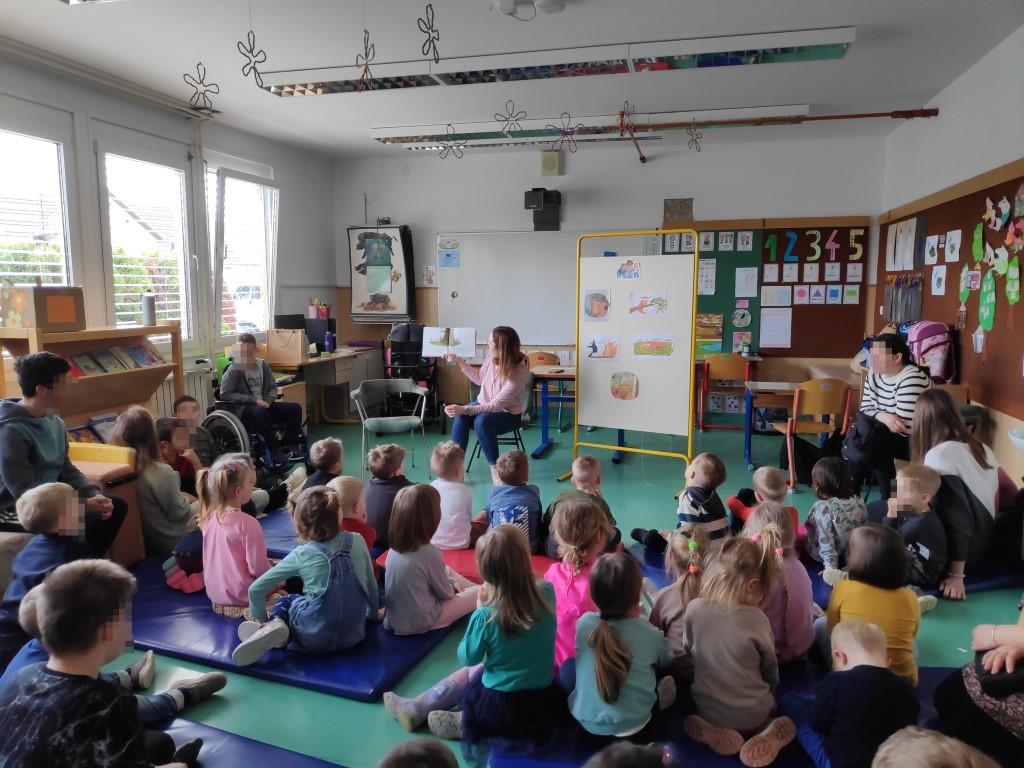 Po pravljici smo se učenci in otroci iz vrtca odpravili na ogled predstave v malo telovadnico z naslovom Kaj počne krokodil ponoči, ki so nam jo zaigrali učenci oddelkov PP3 in PP4. Otroci so predstavo z zanimanjem spremljali, naš krokodil pa je bil prava zvezda! Svojo pesem Lepi krokodil je tako dobro in zabavno odrepal, da je publika zahtevala še eno ponovitev.