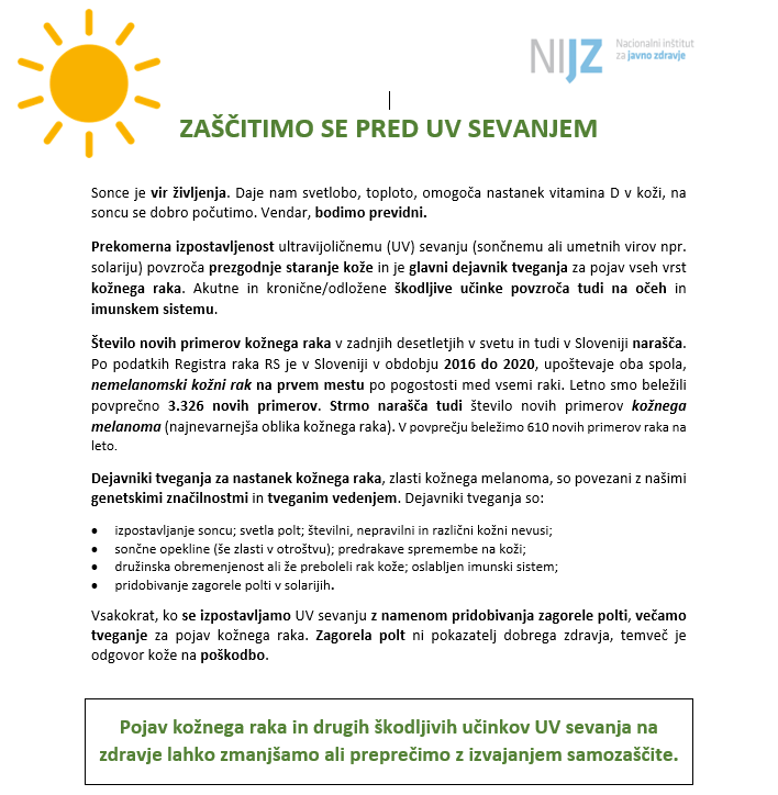 NIJZ OPOZARJA - ZAŠČITIMO SE PRED UV SEVANJEM